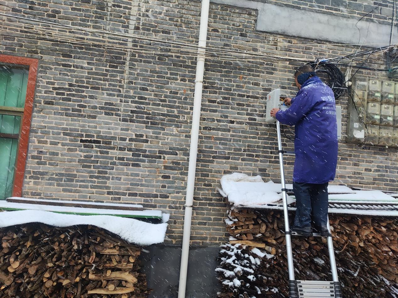 同时,在另一个宽带装维通信保障的“战场”,装维战线上的同志们顶风冒雪,穿梭在大街小巷中,放跳纤、拉皮线、测光衰、熔光纤,在保证安全的前提下,有条不紊的操作,只为竭尽全力缩短宽带交付时间,让客户体验最快、最好、最领先的FTTR宽带,为客户提供百分百满意的服务体验,打造高品质服务口碑。