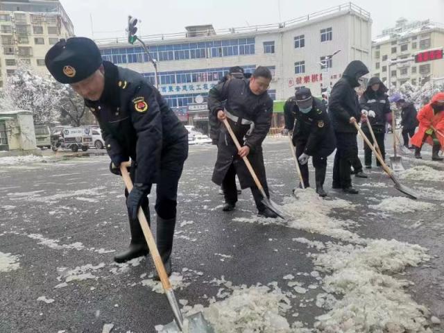 东湖区城管执法局全体人员不畏严寒,提前上班时间,积极主动地带着铁锹、扫帚分别在八一桥、三经路、阳明路、中山路、叠山路等人流量较大的路段扫除积雪,处理倒树,清理路面断枝,并加强隐患排查,在早高峰到来之前清扫干净主次干道,并且在通道进出口处铺设草垫,方便市民出行,保障出行安全。