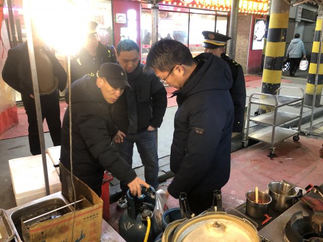 1月24日晚,东湖区燃气办公室、区文化旅游发展有限公司、区城管执法大队夜间中队、百花洲街道等多部门联合行动,重点针对豫章后街(蛤蟆街)“网红”夜市进行燃气安全隐患排查。