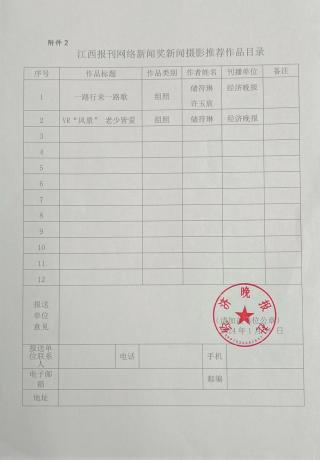 根据江西省全媒体新闻摄影协会(筹)关于开展《第二十六届江西报刊网络新闻奖摄影作品评选暨第三十一届江西新闻奖新闻摄影作品初评的通知》要求,现将本报拟参评申报摄影作品予以公示,若有异议,举报电话:0791-88912522(省记协)。