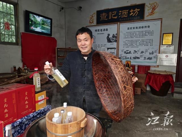 查永红是上饶市市级非遗传承人,也是查记酒坊第十一代传承人。2023年初,他把酒坊开到了村里,成了新石门人。现在酒坊一天可卖出近千瓶水酒。查永红自豪地说:“我要把酿酒的传统手艺传承下去,带动乡亲们致富。”