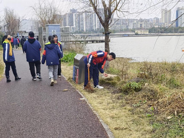 活动中,团委张鼎宸老师讲解了活动内容、注意事项后,小小志愿者们干劲十足,迅速投入到志愿服务行动中。他们一手持清理夹、一手提垃圾袋对河道两岸进行清理,捡拾散落的各类垃圾,小到烟头、纸屑,大到包装袋、塑料瓶都一一“收入囊中”,并及时做好垃圾分类。经过近两小时的捡拾,河岸的垃圾得到了有效清除,河畔焕然一新,志愿者们看着周边的美丽景色也露出了欣慰的笑容。