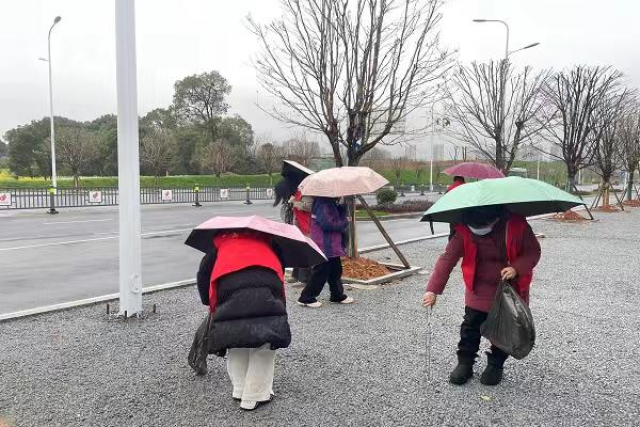 志愿者们手拿扫把、夹子、垃圾桶等卫生工具,在校园周边街道清扫落叶、废纸等杂物垃圾。天空阴沉沉的,细雨绵绵,空气中弥漫着清冽的寒意,但他们的脸上却写满了坚定和期待,身体力行的劳动让校园周边环境变得更加美丽整洁。