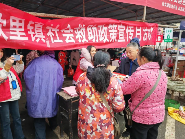 为进一步提升公众对社会救助工作的知晓率、认同感和满意度,让救助政策惠及更多的群众,2月27日,仙女湖区欧里镇在集镇开展社会救助政策宣传月活动,面对面为群众解读社会救助政策、受理救助诉求。