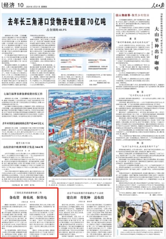 赣鄱大地春意浓,江西省多部门加紧调度协调,保障春耕备耕工作有序开展。