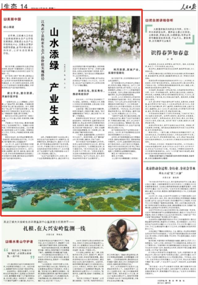 人民日报报道江西武宁:探索生态产品价值实现路径