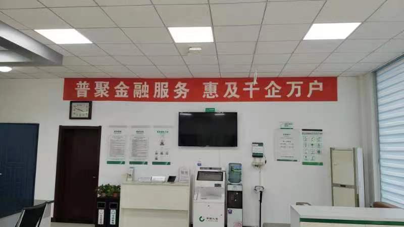 图:中国人寿寿险河北省分公司在营业大厅布展“普惠金融推进月”宣传口号
