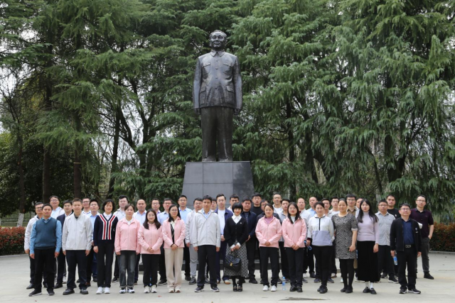 参观后,全体师生与邓小平同志铜像合影留念。