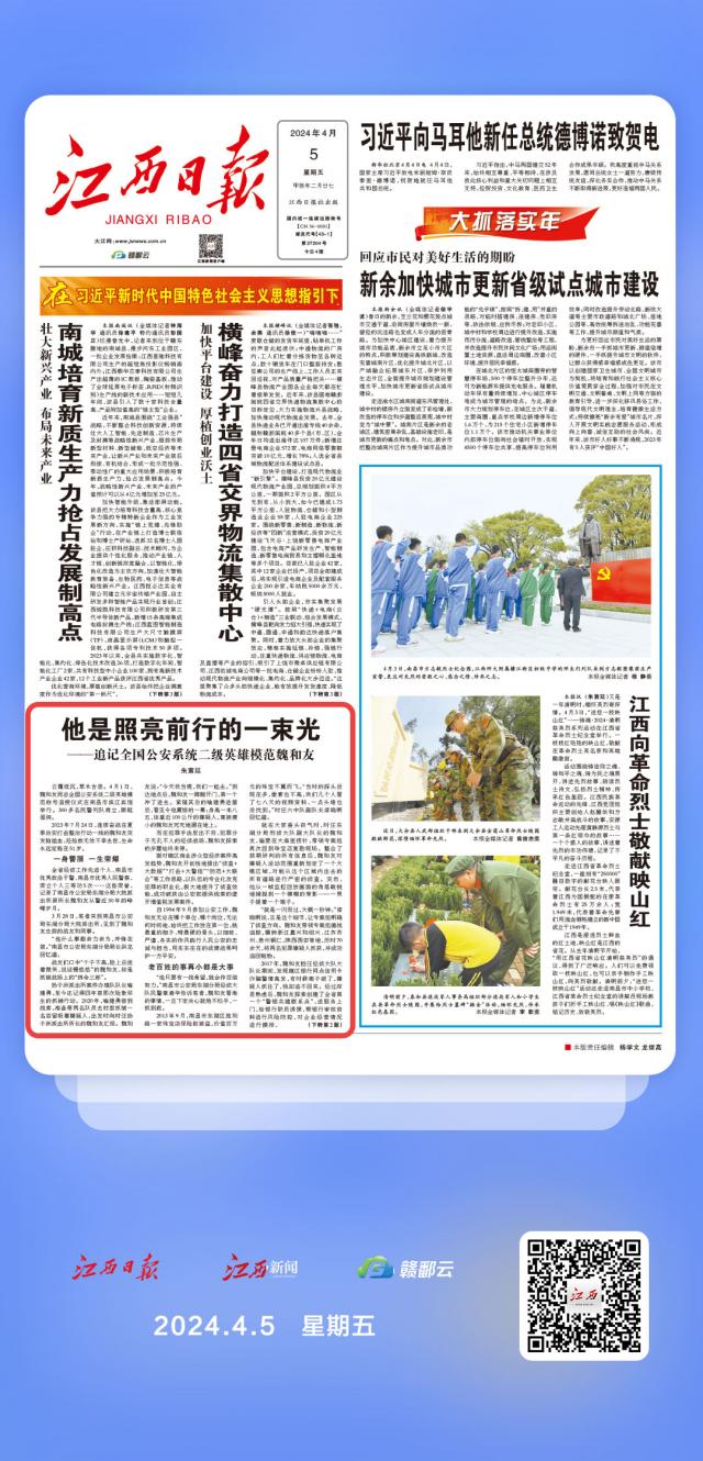 江西日报头版报道:追记全国公安系统二级英雄模范魏和友