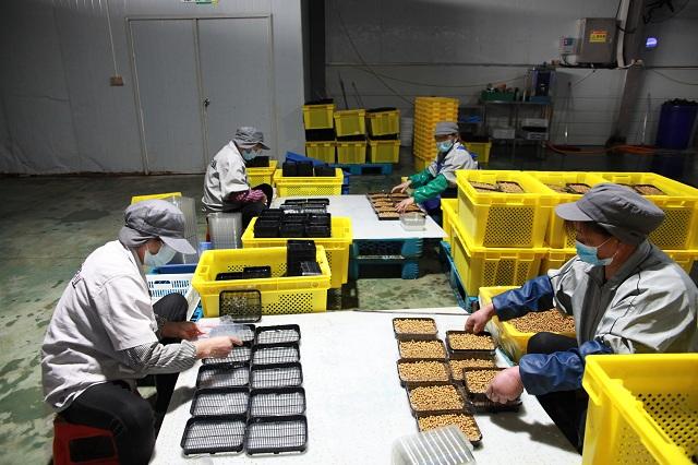 乡村振兴,关键是产业振兴;产业振兴,金融不可或缺。同样益于建行南昌分行金融“活水”支持,不断发展壮大的还有一大批小微企业。走进位于进贤县温圳镇一家以生产豆芽为主的江西某公司的生产车间,现代化的生产线轰鸣作响,工人们在流水线上紧张有序地进行脱壳、称重、装筐等操作;在育苗室,整整齐齐摆放着培育桶,里面的豆种已经开始发芽,充满生机;冷库里,工人将一箱箱打包好的豆芽搬到冷藏车上,这些豆芽便会被运往南昌以及周边地市的各家超市、农贸市场。