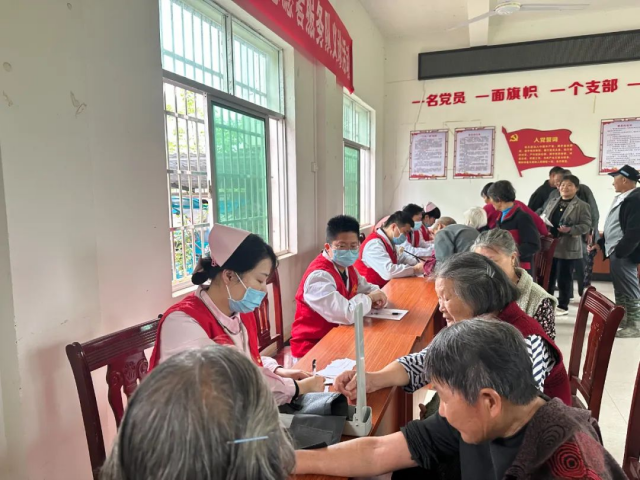 党员志愿者服务队根据当地群众需求,针对性地组织了医院内科、外科、儿科、医技科等科室的党员业务骨干参加此次义诊活动。活动现场,志愿者们以饱满的热情和专业的态度,为当地百姓免费提供问诊、测血糖、测血压、心电图和彩超等服务,为大家提供专业的医疗建议,耐心解答他们的问题,并根据他们的病情免费发放药物并进行用药指导。