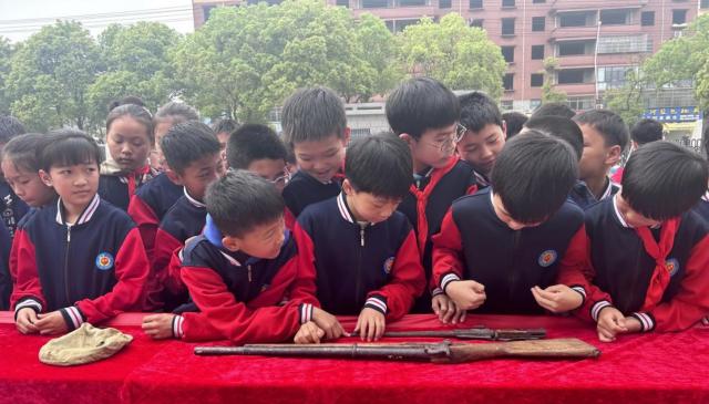 活动中,同学们在讲解员的带领下,参观了博物馆带来的移动展板和珍藏实物。一幅幅生动的历史图片和一件件布满时间沧桑的文物,同学们仿佛回到了那个烽烟弥漫、炮火纷飞,中国军民奋勇抵抗侵略的年代。随后,赣西抗战博物馆讲解员王晓珍开展“重温红色记忆”宣讲活动,通过重点讲解“红色中华报”“陆钟祥的家书”“战地之花”等故事,根植红色基因,赓续红色血脉。最后,本次的红色文化宣讲活动在红色老兵张爷爷的一首红色歌曲中结束。