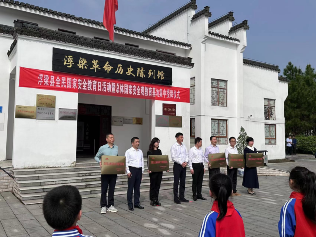 4月15日上午9点,浮梁县总体国家安全观教育基地集中授牌仪式在浮梁县革命历史纪念馆举行,浮梁县第三小学优秀少先队员代表参加了本次活动。授牌仪式结束后,少先队员代表们还参观了浮梁革命历史纪念馆,他们见到了许多革命斗争中留下的红色文物,通过图片、地图更加直观感受到了革命先辈们为革命事业顽强抗争的精神,感受到今天的幸福生活来之不易。他们纷纷表示,要勤奋学习、努力拼搏,长大后要立志报国,维护国家安全。