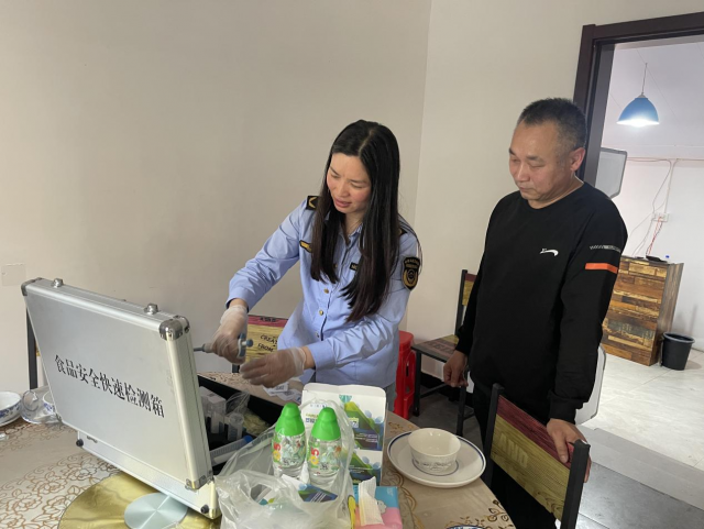 此次餐具快检工作采取不打招呼、直奔采样单位的形式,以辖区家常菜馆、网红餐饮服务单位为重点检测场所,通过“快检+指导”的模式,做到监管与服务相结合。本次行动共开展快检40批次,涉及10家餐饮服务单位,其中3批次的餐具检测结果为阳性,执法人员当场向餐饮单位反馈检测结果,并对现场发现操作存在不规范的餐饮服务单位,责令整改,持续跟踪。