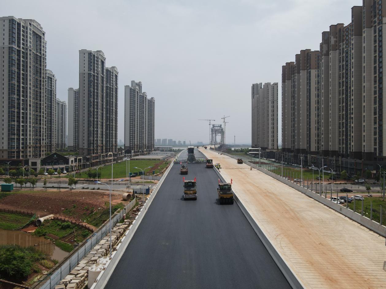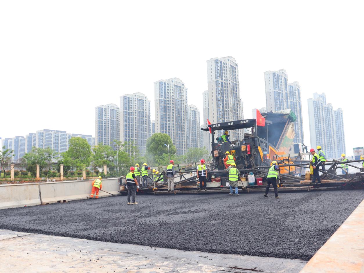 4月23日9时16分,随着第一车沥青混合料驶入,中铁大桥局洪州大桥沥青摊铺施工正式启动,标志着项目建设进入竣工“倒计时”阶段。