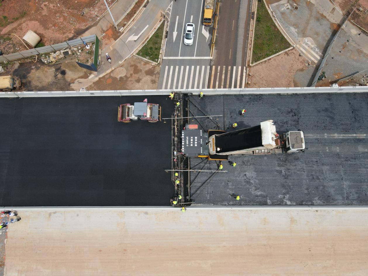 过程中,项目部现场施工负责人全程紧盯现场,施工人员严格按照标准规范作业,对沥青混合料拌合、摊铺温控及厚度、碾压工艺等进行层层把关,确保沥青铺设质量。