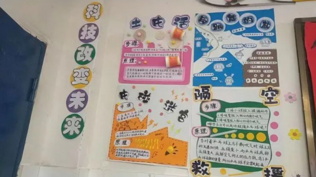 此外,该校组织各班学生开展科技小报的创作、绘制班级文化墙、设计科技角等活动,进一步激发学生爱科学、探索世界奥秘的热情,促进儿童的全面发展。