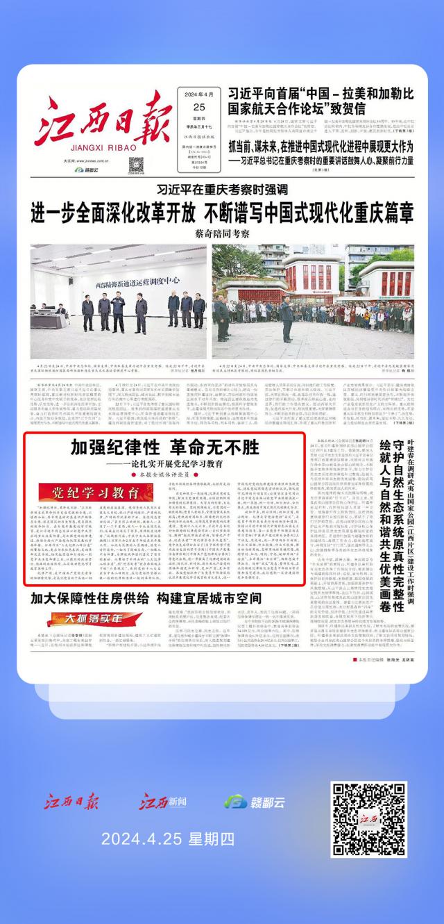 江西日报“党纪学习教育”专栏|评论员文章:加强纪律性 革命无不胜