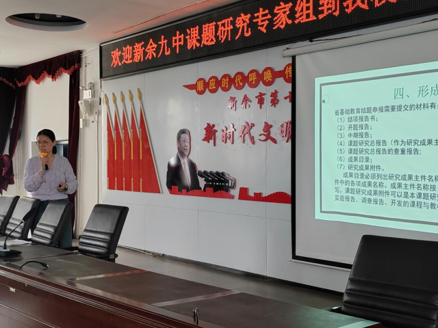 4月24日上午,新余十六中迎来了一场特别的学术盛宴——新余九中课题负责人员到该校,进行了一场精彩纷呈的课题指导讲座。讲座由新余九中教研处主任丁飞云带队,副主任梁诗云主讲。