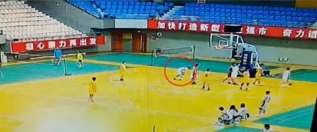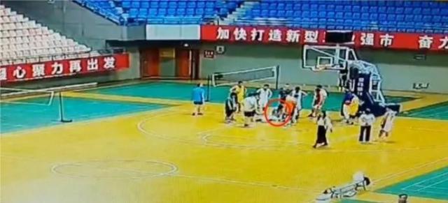 一位正在打篮球的小伙突然倒地