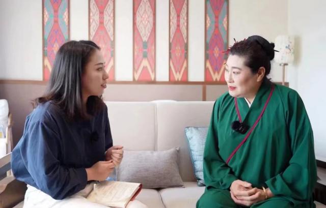《当代江西》杂志记者采访“王婆”角色扮演者赵梅。