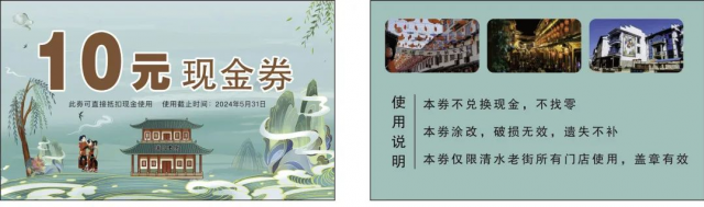使用说明:本券不兑换现金,不找零;本券涂改,破损无效,遗失不补;本券仅限清水老街所有门店使用,盖章有效