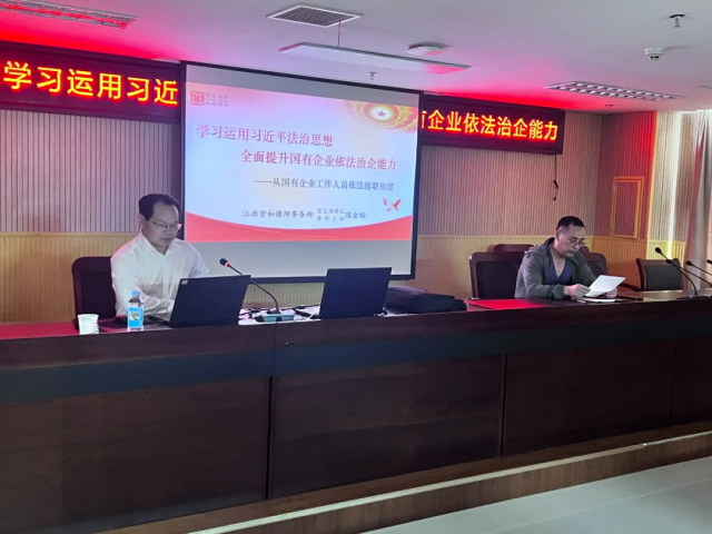 会议邀请了江西贤和律师事务所党支部书记、主任、集团长年法律顾问团队负责人陈金标为参训人员授课。培训会上,陈金标围绕国有企业工作人员全面依法履职应熟悉了解的相关主要规定、国有企业工作人员全面依法履职应注意的若干法律问题等方面进行了深入解析和分析指导。并结合集团现状,提出了一系列针对公司依法治企的建议,涵盖公司章程优化、制度建设、“三重一大”决策、合同订立与履行、纠纷事务管理、档案管理等方面。