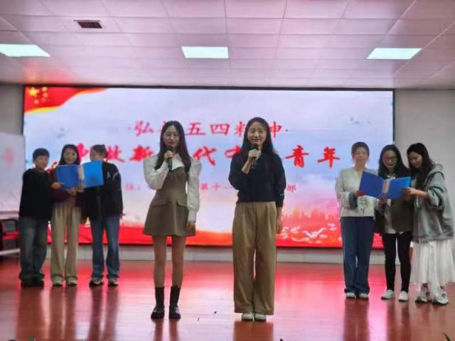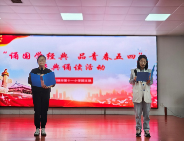 接下来开展了“诵国学经典,品青春五四”经典诵读活动。气势磅礴的《少年中国说》、音韵和谐的《笠翁对韵》、北朝乐府民歌《木兰诗》、苏轼的《水调歌头》、毛泽东的《沁园春•雪》等一篇篇激情昂扬抒写壮丽青春的诗文佳作,声情并茂地诵读,表达了中国共产主义青年团在中国共产党的正确领导下追求崇高而神圣的理想和“五四”精神薪火相传、青春无悔,也充分展示了团员青年始终以“讴歌真善美,传播正能量”为己任的初心使命和担当精神。