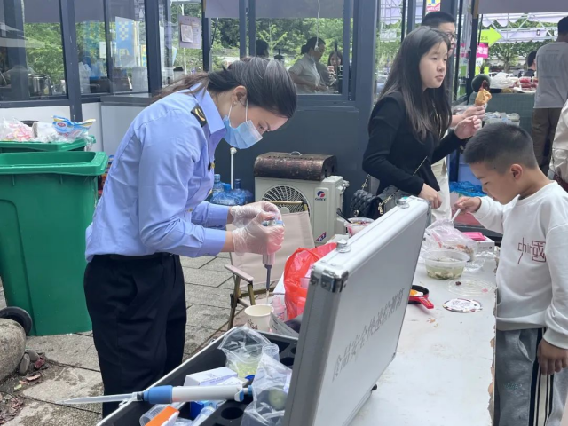 为优化“五一”假期消费环境,守护群众“舌尖上的安全”,进一步深化能力作风建设、行风建设,景德镇市昌南新区市场监管局先后在昌南湖美食街、洪源镇美食街等食品小摊贩集中点开展“护航五一”食品快检活动。
