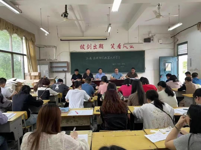 为深入治理教育乱收费,严肃查处中小学“违规收费、违规补课、违规订购或推销教辅材料”的“三违”行为,强化师德师风建设,树立良好的教育形象,落实好校党委会要求,4月以来,新余一中分年级召开了“三违”治理专题学习会议。以“零容忍”的态度向有偿补课“亮剑”,全力营造风清气正的育人环境。