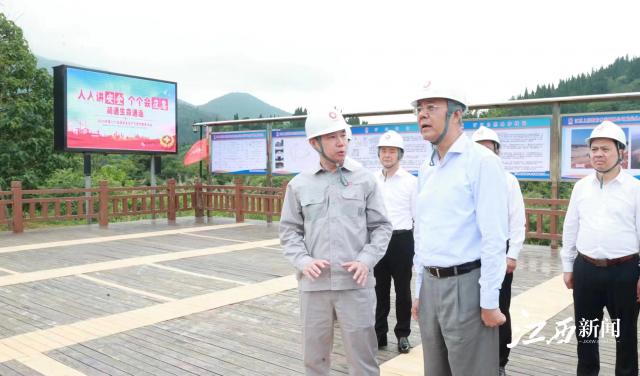 在上高南方水泥有限公司,尹弘走进矿山数控中心,详细了解数字化矿山建设和安全措施,要求健全完善矿山安全综合信息化平台,加强矿山多灾种和灾害链综合监测,严防安全事故发生。尹弘登上作业平台俯瞰整个矿区现场,听取矿山开采、生态修复等工作情况,强调要深入推进绿色矿山建设,加强综合利用和生态修复,加大监管执法力度,筑牢生态环境安全底线。