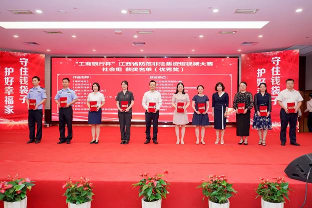 广发银行南昌分行在此次“工商银行杯”江西省防范非法集资短视频大赛中荣获“优秀组织奖”和“优秀视频奖”双重荣誉,其中仅广发银行南昌分行一家股份制银行荣获“优秀组织奖”。
