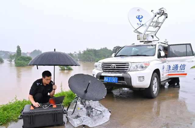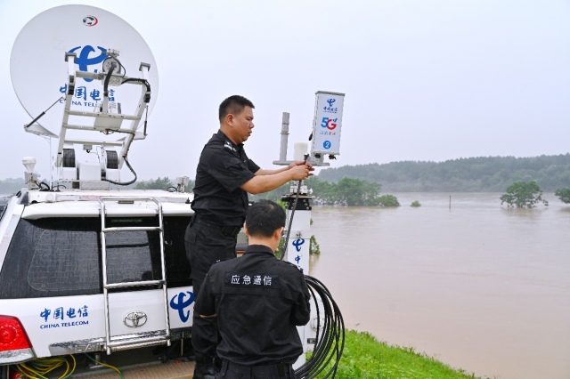 面对险情,以“汛”为令,中国电信江西公司迅速启动应急预案,“映山红”通信抢险突击队紧急出动,奔赴受灾现场。队员们无惧风雨,修复被毁通信设施,同时检查维护桥面的视频监控设备,实时关注洪水动向。为确保通信畅通,应急队员还启用了卫星通信系统,并调配5G应急车辆和光缆抢修队伍,形成了“天地一体”的全方位立体式应急通信保障。