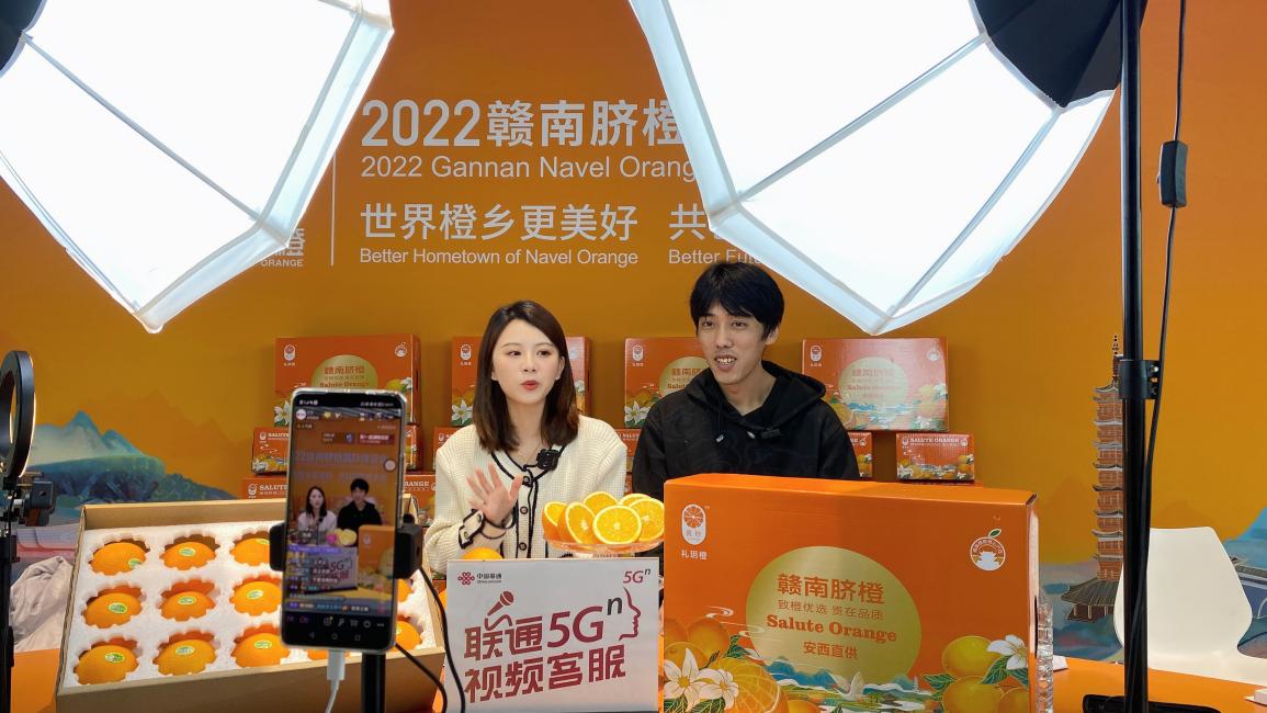 在“红色故都”“世界橙乡”赣州开展5G公益助农直播节,销售赣南脐橙50吨