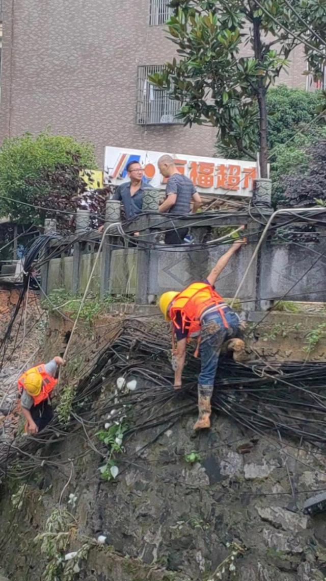 中国电信九江修水分公司在塌方滑坡地带抢修中断通信光缆