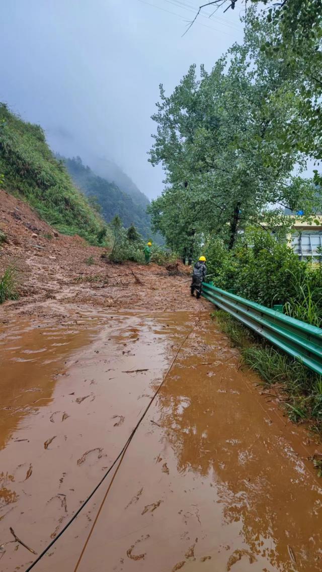 中国电信九江分公司应急通信抢修人员在塌方路段抢修通信线路