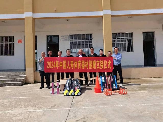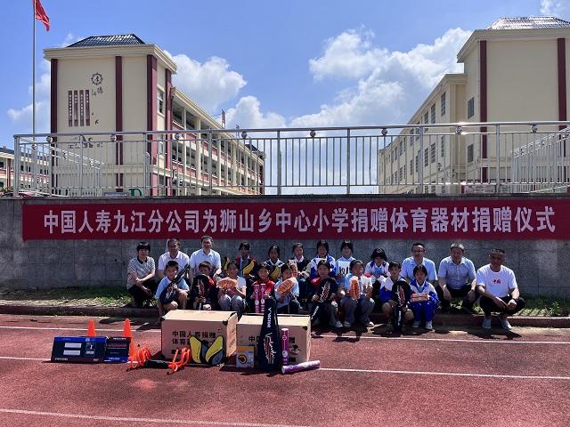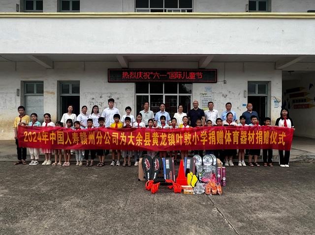 为积极响应国家乡村振兴和体育强国号召,2024年,中国人寿江西省分公司“百校体育帮扶计划”体育器材捐赠活动走进赣州市大余县黄龙镇叶敦小学、抚州市宜黄县棠阴学校、抚州市临川区高坪镇中心小学、九江市都昌县狮山乡中心小学、上饶市鄱阳县白沙洲乡中心学校等5所结对帮扶地区中小学,为以上学校捐赠了篮球、乒乓球、羽毛球、田径用品等“体育器材包”。
