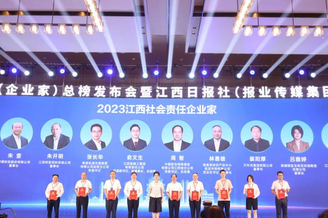 2024年8月26日,2023社会责任企业(企业家)总榜发布暨江西日报社(报业传媒集团)ESG研究院揭牌仪式召开。江西省政协副主席、省工商联主席谢茹出席大会并为2023江西社会责任企业家颁奖。