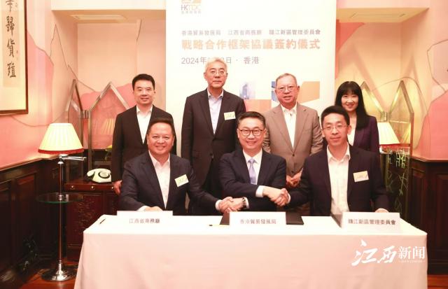 在港期间,尹弘拜访了香港贸易发展局主席林建岳,双方共同见证了香港贸易发展局与省商务厅、赣江新区分别签订合作框架协议,希望香港贸易发展局发挥桥梁纽带作用,积极为香港企业到江西投资发展、江西企业到香港开拓市场牵线搭桥,促进香港与江西的交流合作不断深化。