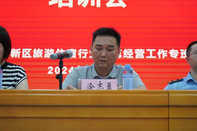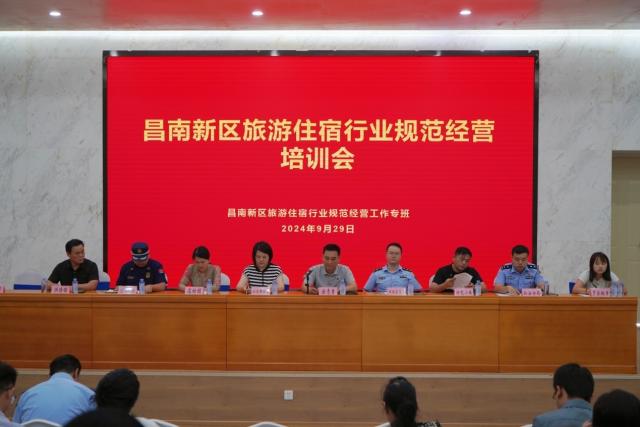 国庆长假即将来临,为规范旅游住宿行业,维护消费者权益,9月29日下午,昌南新区市场监督管理局联合社会事业局、消防大队、名坊园服务中心、公安分局、洪源镇、罗家桥乡、特色小镇等部门,在名坊园阶梯教室召开旅游住宿行业规范经营培训会。昌南新区党工委委员、管委会副主任涂志勇主持会议并讲话。