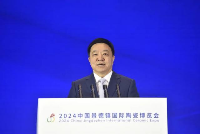 叶建春在开幕式上致辞,代表省委和省政府,代表江西人民向与会嘉宾表示热烈欢迎。他说,习近平总书记多次对景德镇御窑遗址保护和陶瓷文化传承创新作出重要指示批示。去年10月,习近平总书记亲临景德镇考察,对陶瓷文化保护传承作出重要指示,为景德镇国家陶瓷文化传承创新试验区建设擘画了宏伟蓝图、指明了前进方向和路径。我们牢记嘱托、担当实干,推动千年遗存得到精心呵护、千年技艺实现系统传承、千年品牌持续重塑提升、千年故事不断精彩演绎,“千年瓷都”正展现出一幅新时代“陶阳十三里、烟火十万家”的精美画卷。我们将进一步担负好景德镇国家陶瓷文化传承创新试验区建设的重大政治责任,全力保护传承文化遗产,做强做大产业实力,引进培育各类人才,推动深化交流合作,让“千年瓷都”的根脉更加稳固、支撑更加强劲、创新更加持久、影响更加深远,努力把“千年瓷都”这张靓丽的名片擦得更亮。