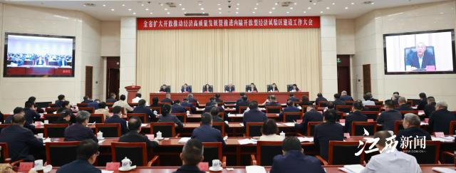会议以视频形式召开至各设区市、县(市、区),省商务厅、省发展改革委分别通报了全省开放型经济运行情况和内陆开放型经济试验区建设进展情况;赣州市、贵溪市、省交通运输厅、南昌海关作了发言。