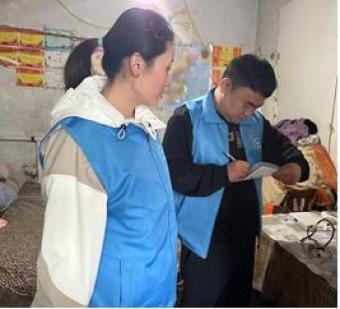 图:中国人寿寿险蒙阴支公司工作人员看望宋大娘