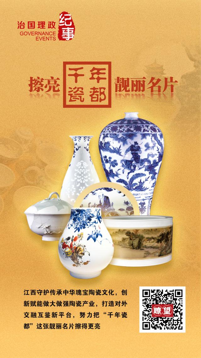 经国务院同意,国家发展改革委、文化和旅游部印发《景德镇国家陶瓷文化传承创新试验区实施方案》,支持江西推动景德镇陶瓷文化产业创新发展。