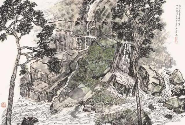 王林森《水口景区瀑布多》中国画46×68cm