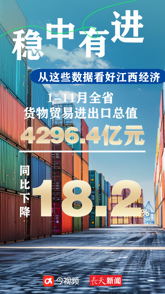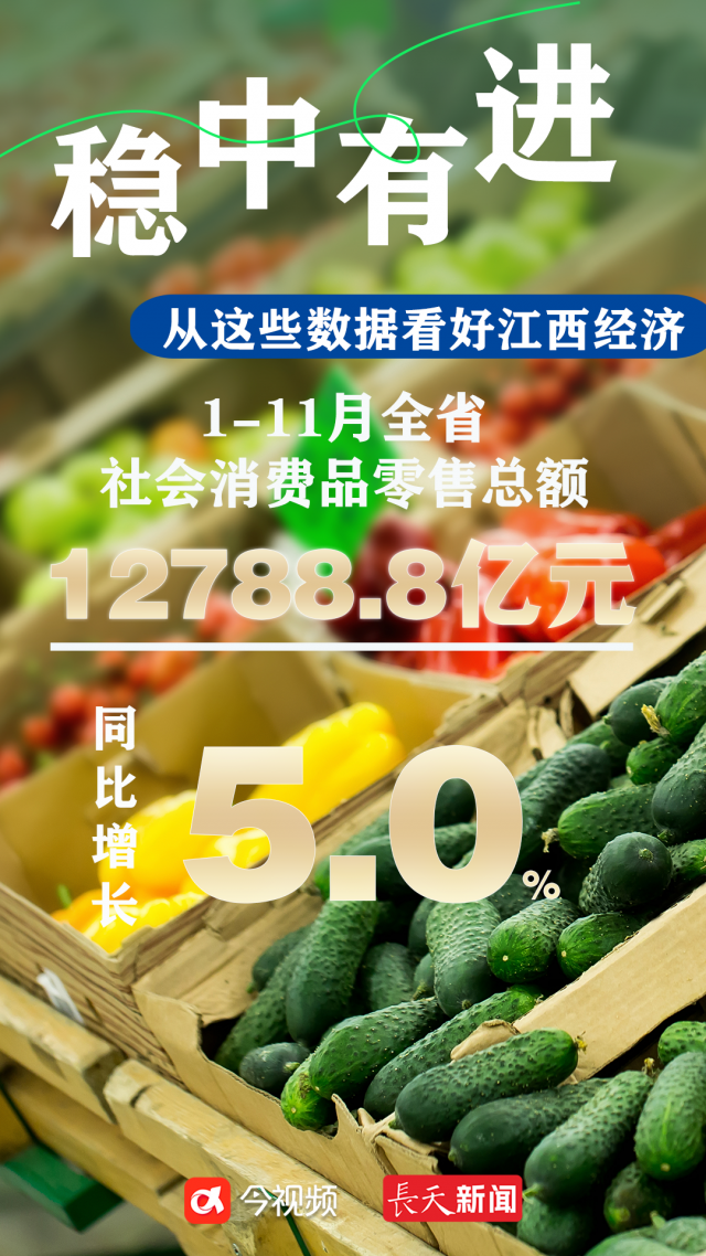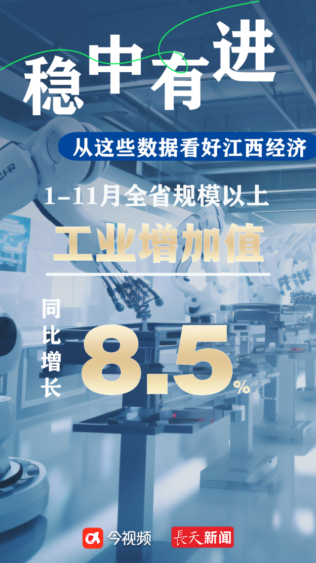 12月17日,江西统计公布了2024年1-11月全省经济运行情况。总的来看,全省经济稳中有进、持续向好,高质量发展稳步推进,一组海报速览1至11月江西经济。