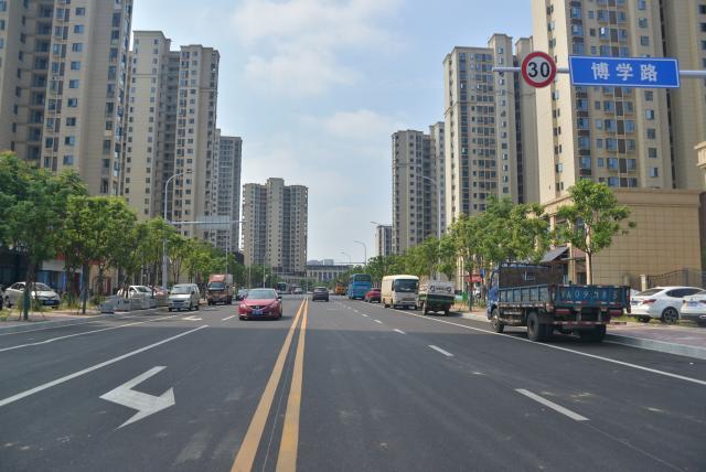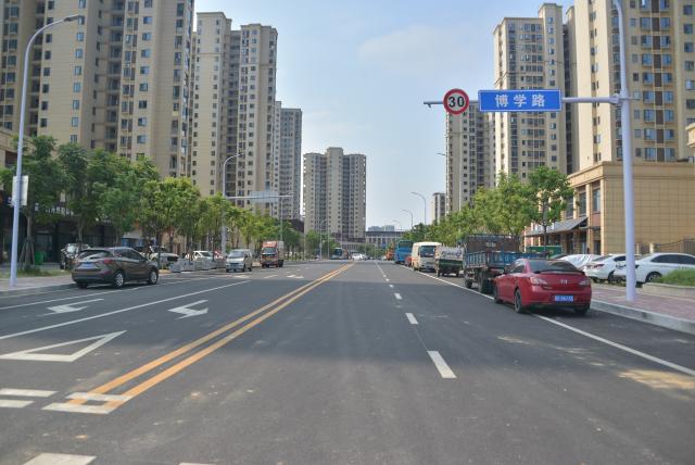 走进市政开发集团博学路项目现场,平坦宽阔的路面干净整洁,交通标线清晰醒目,车辆通行十分顺畅……