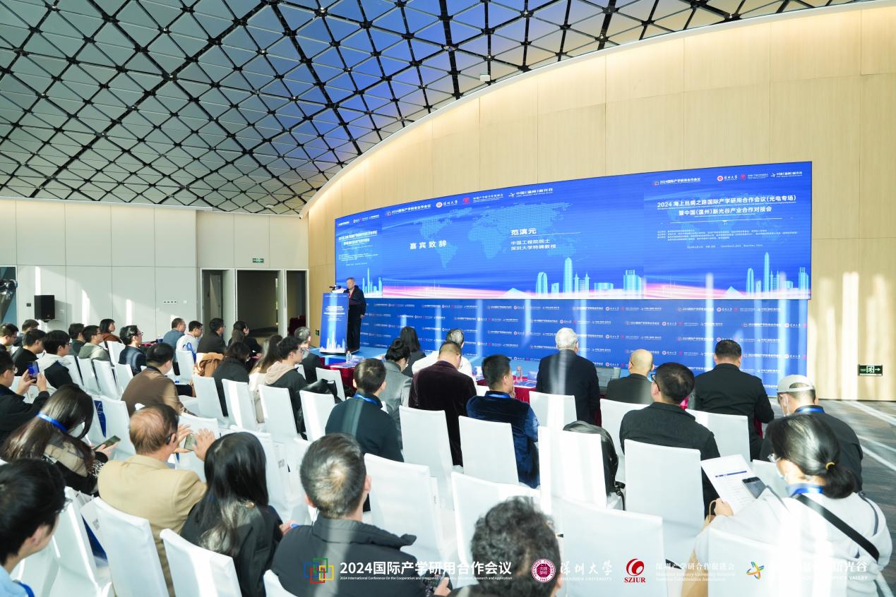 12月21日,“2024海上丝绸之路国际产学研用合作会议(光电专场)暨中国(温州)新光谷产业合作对接会”在深圳圆满举行。此次活动旨在推动光电领域的学术研究、产业发展和应用实践,吸引了来自国内外激光与光电领域的专家学者、企业家以及政府部门代表近160人参与其中。