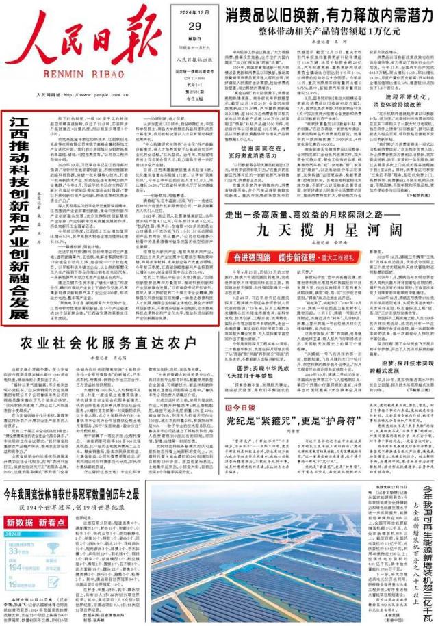 人民日报头版头条|江西推动科技创新和产业创新融合发展