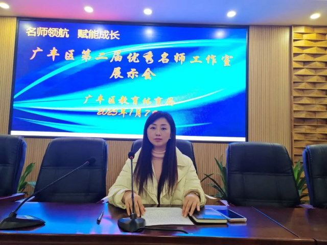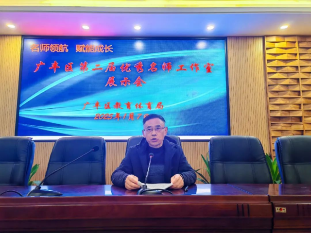 随后,广丰区地理名师工作室、广丰区语文名师工作室、广丰区小学语文名师工作室三个示范性名师工作室;“字正腔圆”课程开发工作室、“效阅读”名师工作室、饮冰·名师工作室、广丰区化学名师工作室四个优秀名师工作室依次进行了成果展示。展示内容丰富多样,涵盖了教学研究、课程开发、教师培训、学生培养等多个方面。一堂堂精品课例、一项项课题研究、一本本校本教材、一张张获奖证书,凝聚着工作室全体成员的心血与汗水,彰显着他们对教育事业的无限热爱与担当。